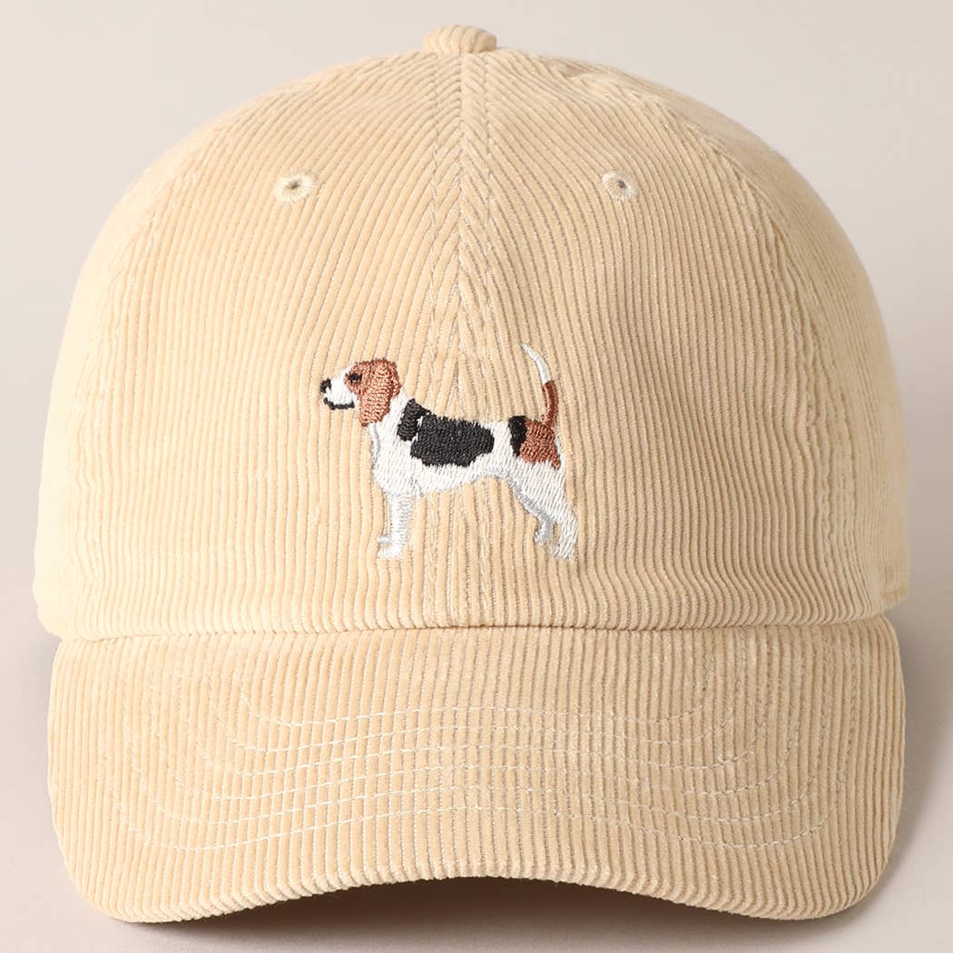This soft beige corduroy baseball cap features an adorable embroidered beagle — the perfect companion for your everyday style. Cozy and casual, it adds just the right amount of charm to any outfit.