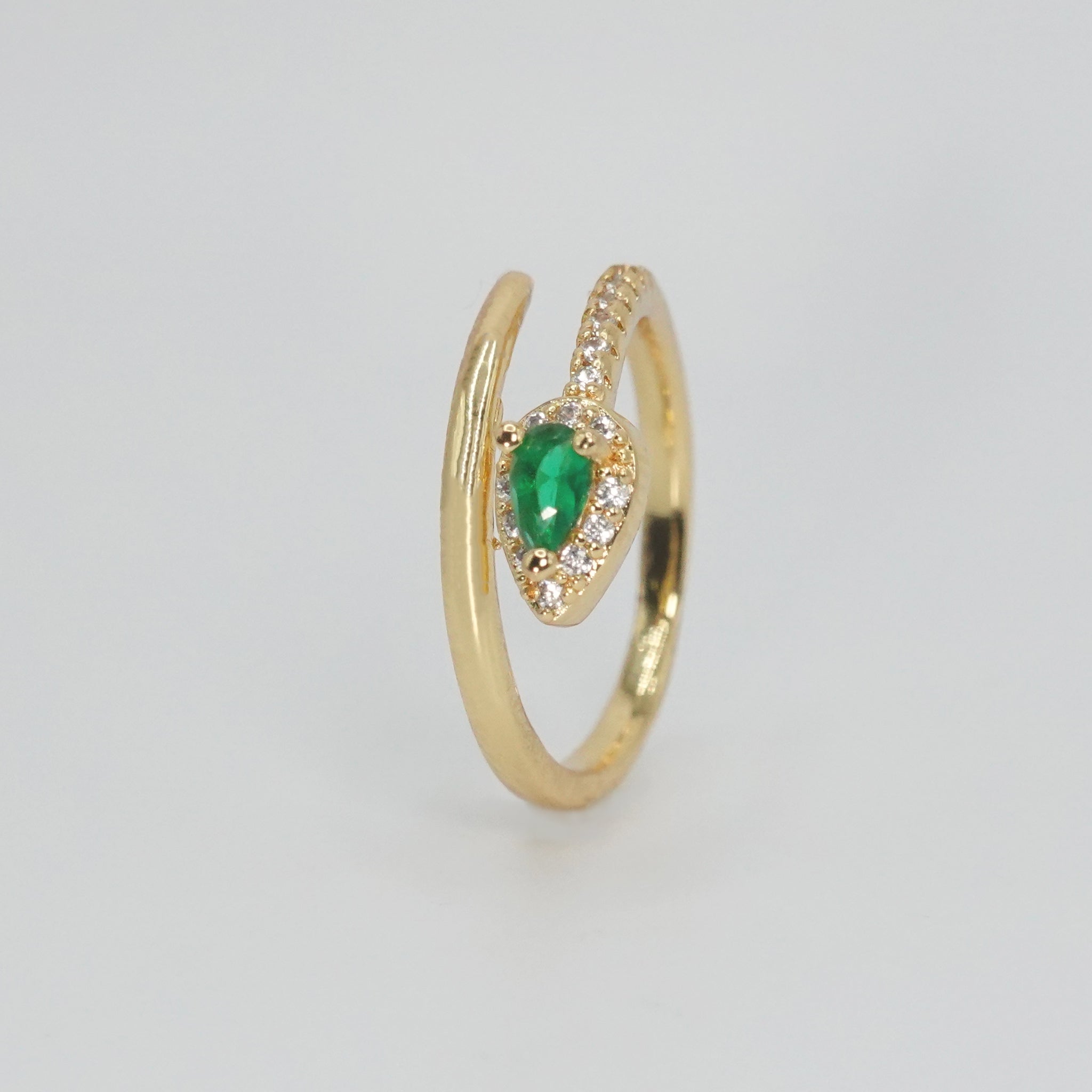 Embrace your adventurous side with the Callon Ring, featuring a mesmerizing snake-shaped design and a captivating green gemstone at its head. Crafted with meticulous detail, it exudes an aura of mystique and sophistication, perfect for those who dare to be different.
