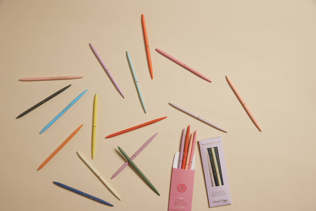 The "Celestial Magic" Slim Metal Pen Set features four elegant twisty pens, each with a cosmic-inspired message. Designed for smooth writing, these pens are a perfect gift for those who love a touch of magic and inspiration in their stationery.