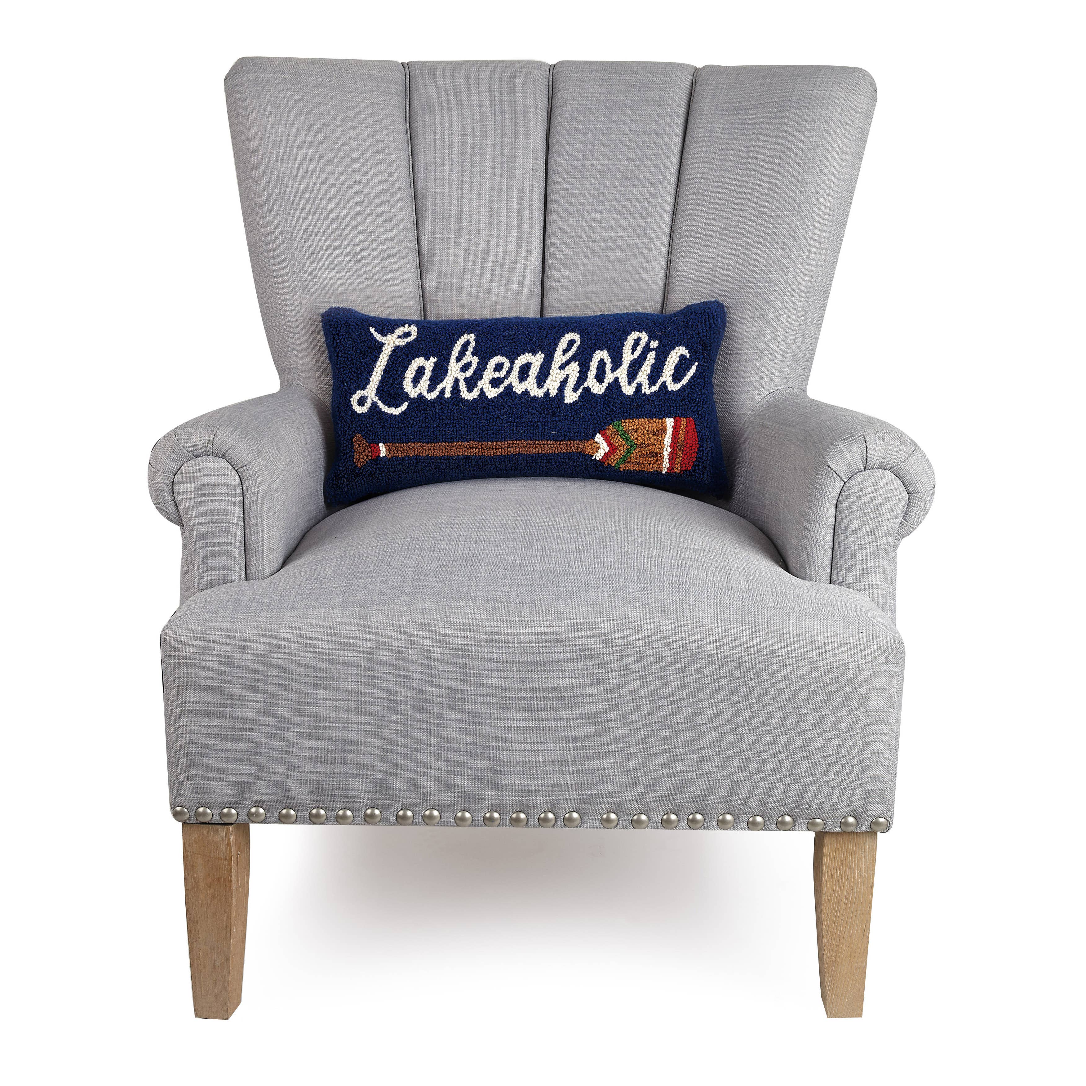 Celebrate your love for the lake life with the Lakeaholic Hook Pillow. Featuring a playful "Lakeaholic" script and a colorful paddle graphic, this pillow is the perfect accent for lake cabins or homes. Crafted from cozy wool, the deep blue background and fun design bring a relaxed, lakeside vibe into your space.
