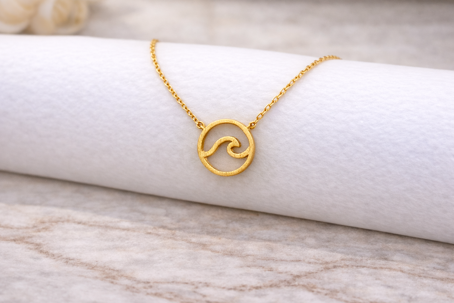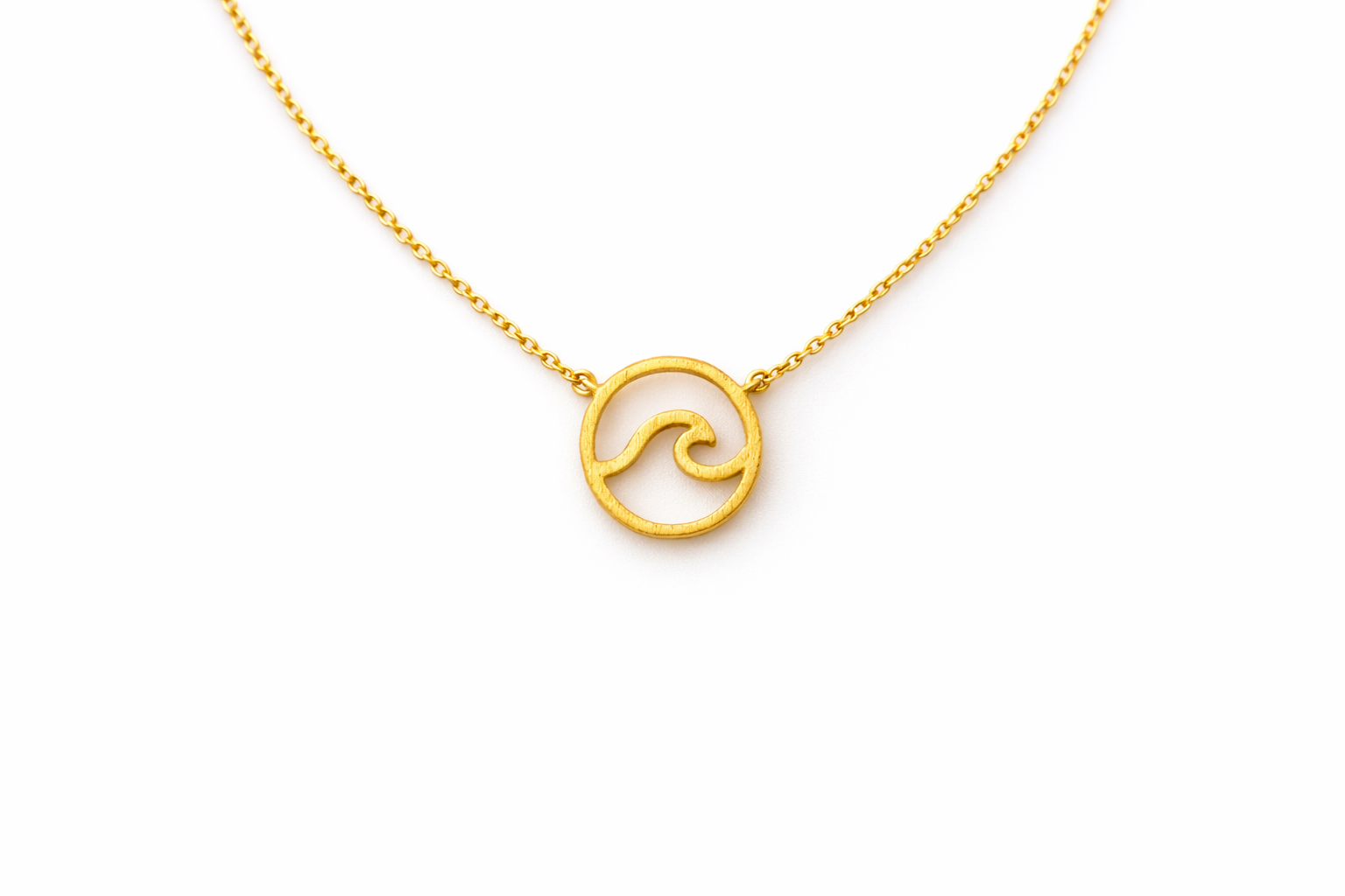 A minimalist round pendant featuring a smooth wave cutout and a softly brushed finish. Simple, beachy, and easy to wear this piece brings a little ocean energy to your everyday layers.