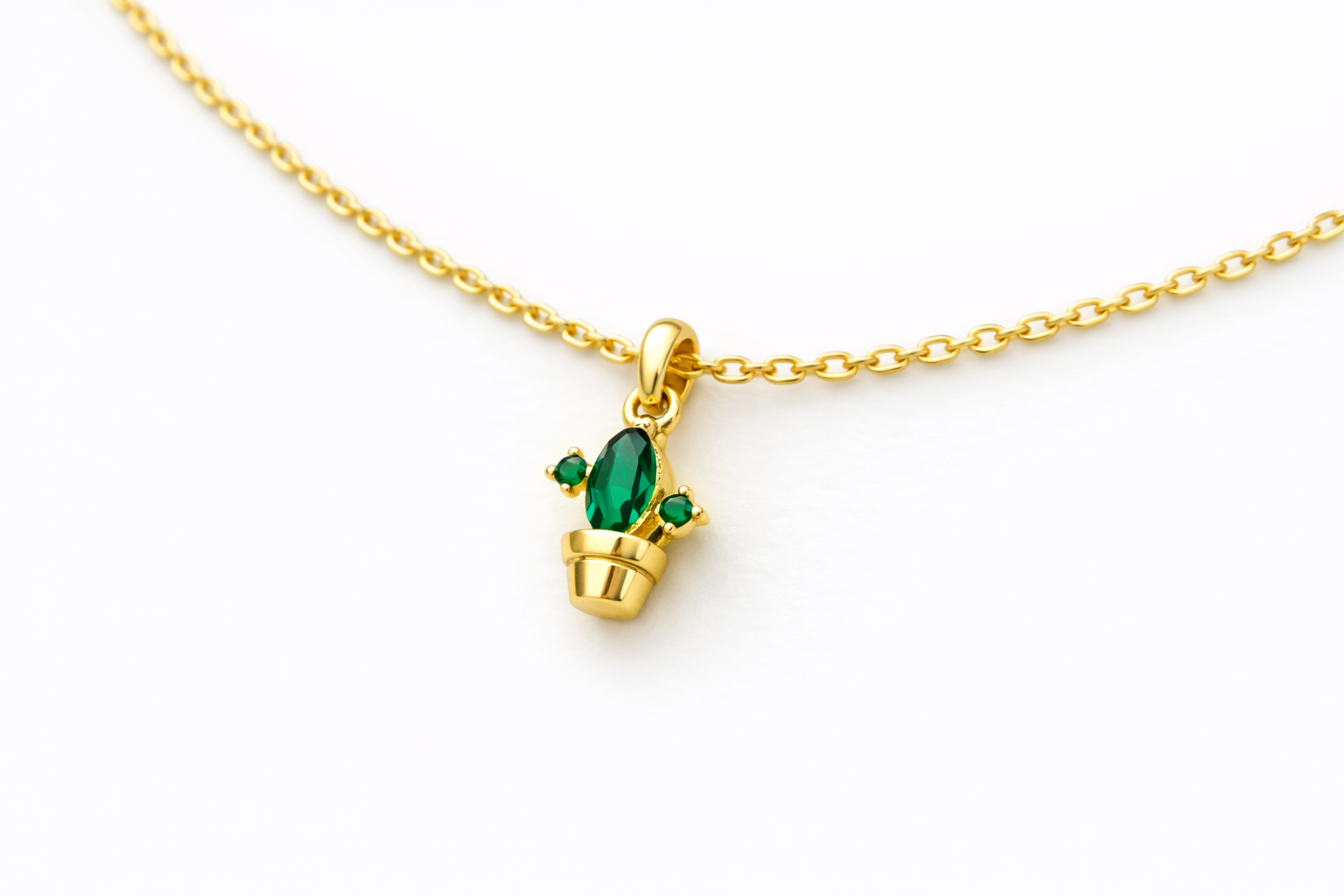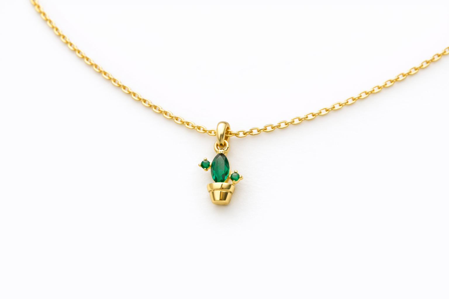 Emerald Cactus Pendant Necklace Emerald Cactus Necklace