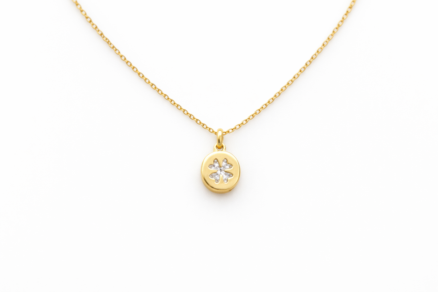 Delicate and easy to wear, this gold filled necklace features a mini polished charm with a sparkling floral cutout at the center. It’s the perfect everyday piece for layering, gifting, and adding a soft little shimmer to any look.