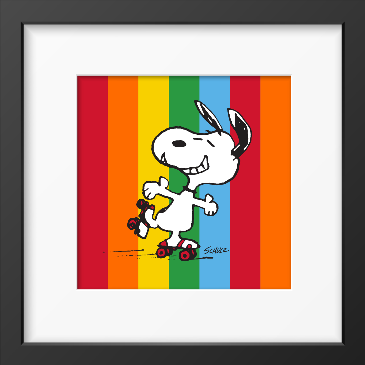 This framed print captures a carefree moment of a beloved character rolling on skates against a vibrant rainbow-striped background. A fun and nostalgic piece that adds color and personality to any space.