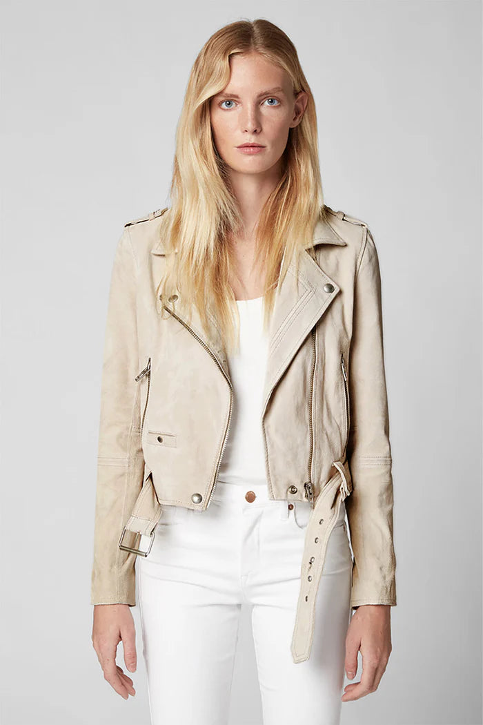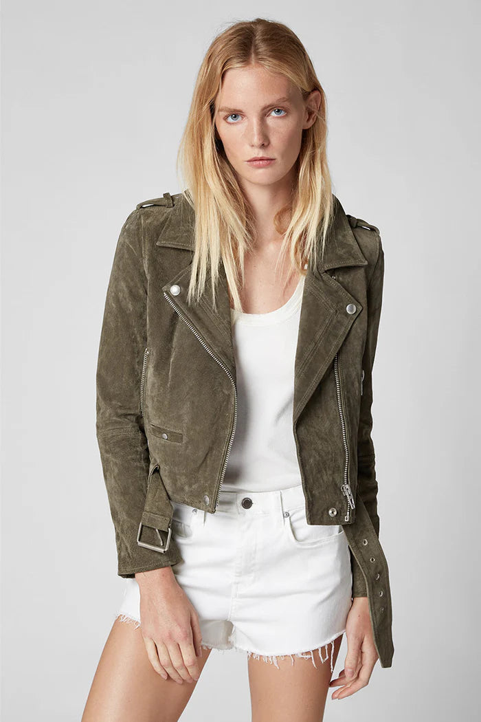 A timeless suede moto jacket with a cropped, tailored fit and classic biker details. Soft, structured, and easy to style, it adds an effortless edge whether you wear it with denim, minis, or basics. A staple layer you’ll reach for all year long.