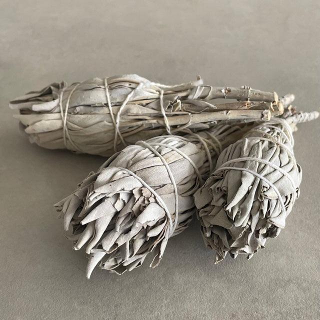 Sage is used in smudging rituals. To smudge with Sage, begin by lighting the Sage. Place sage into a burning vessel such as an abalone shell and use your hand to fan out any flame. Clear your mind of negativity and allow positivity to flow. Use the feather to waft the smoke with your intentions. Sage helps to remove negativity from a space.