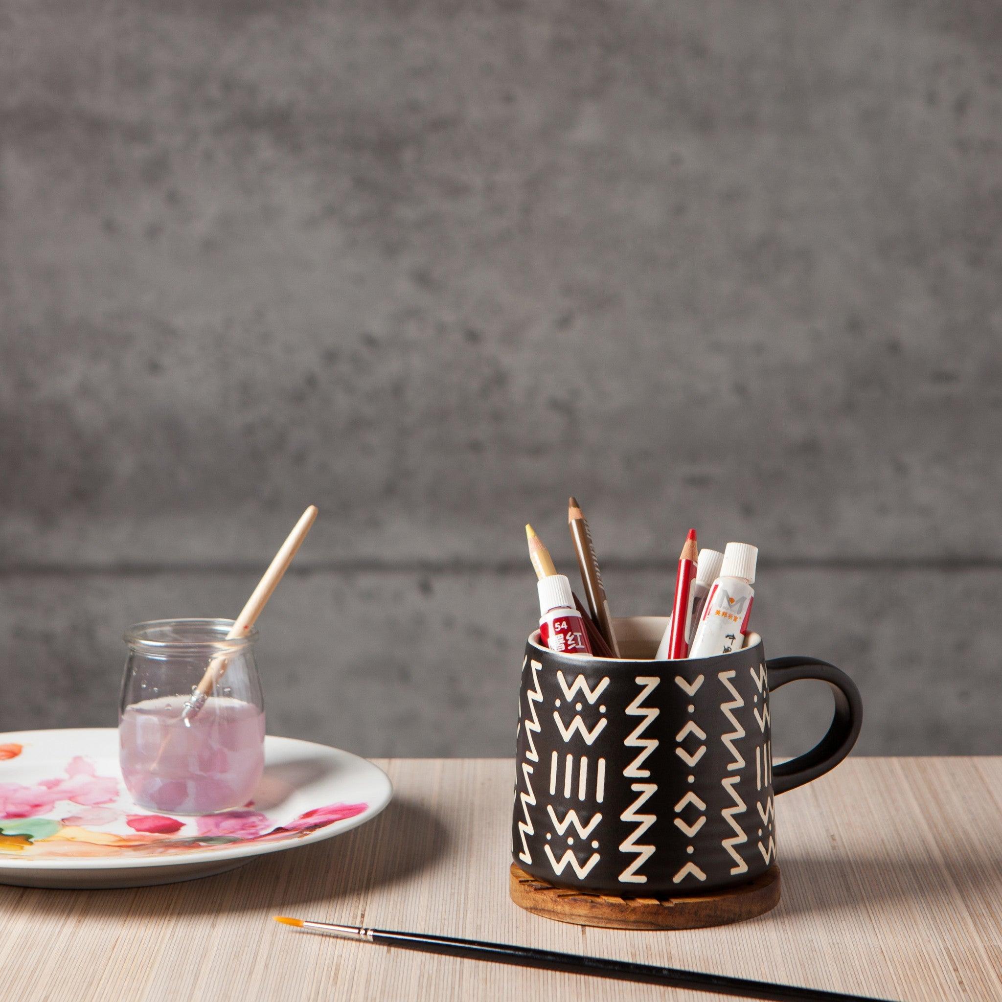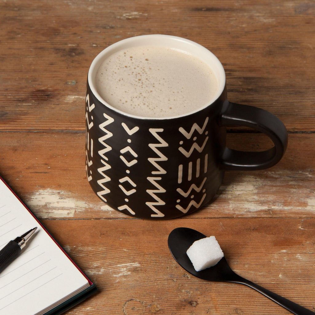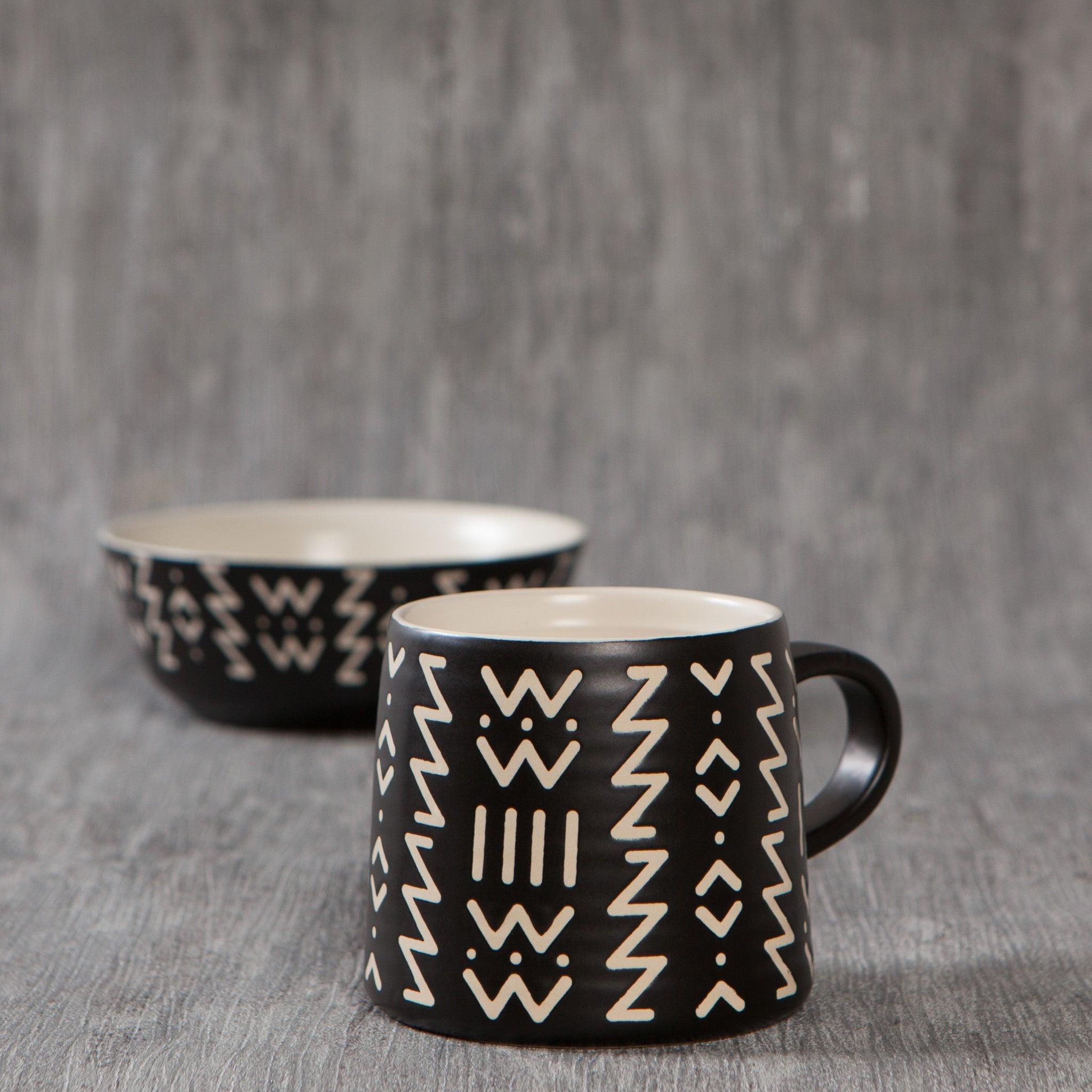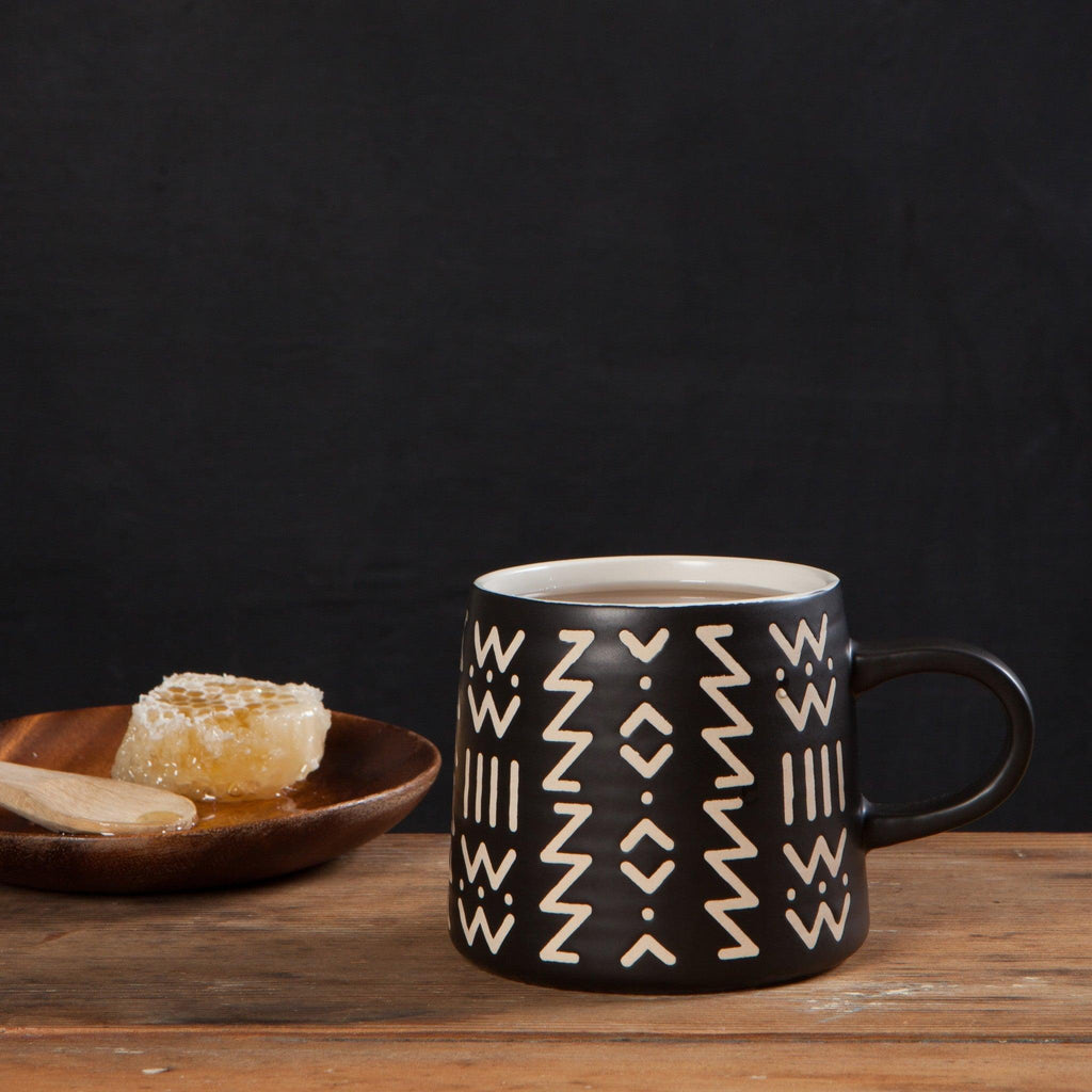 Embrace drama and intrigue with the Ziggy Imprint Mug. Its stylized zigzag lines and high-contrast black-and-white palette create a captivating and engaging pattern.